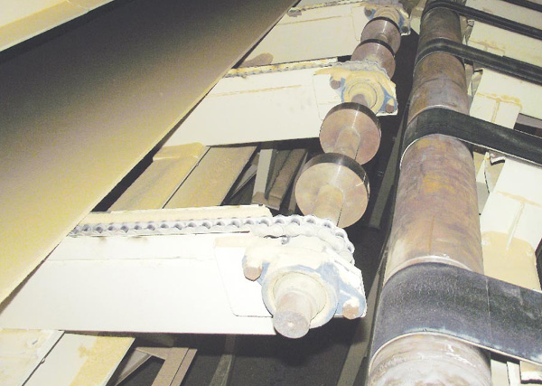 板料由鏈式輸送機進入皮帶機